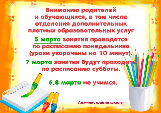 Расписание на 5 - 8 марта