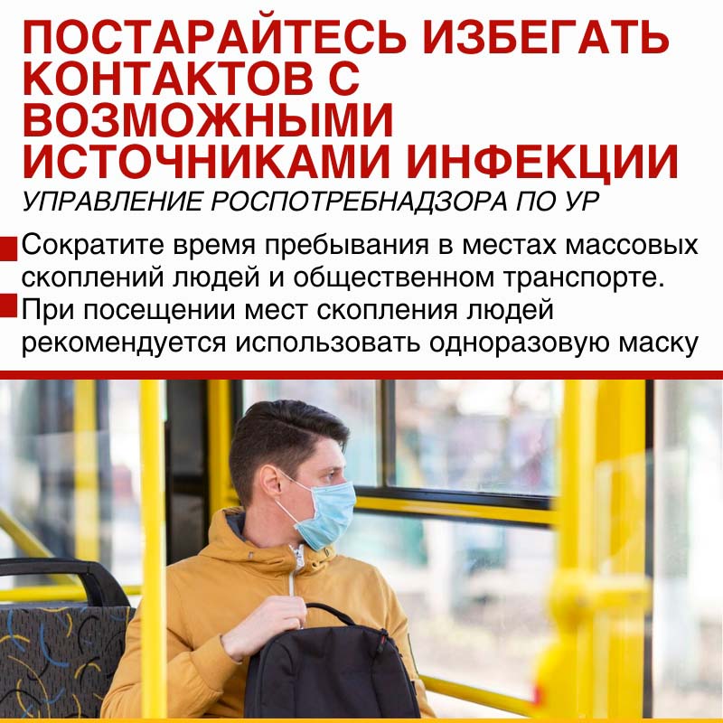 -В период эпидемиологического неблагополучия по гриппу и ОРВИ не рекомендуется посещение массовых зрелищных мероприятий, мест массового скопления людей (магазины, общественный транспорт и т.п.) или хотя бы, по возможности, сократить время пребывания в таких местах;