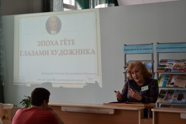 Доклад по теме «Эпоха Гёте глазами художника», прочитанный Татьяной Владимировной, по словам участников конференции, «представляет ценный познавательный материал по архитектуре парков Германии. Данный материал может быть использован в рамках практических занятий по курсу «Страноведение Германии» и дисциплине «Практика устной и письменной речи» по тематическому блоку «Изобразительное искусство Германии». Организаторы секции «Гётевские чтения» выражают надежду на дальнейшее сотрудничество с преподавателями художественной школы в этом направлении работы.