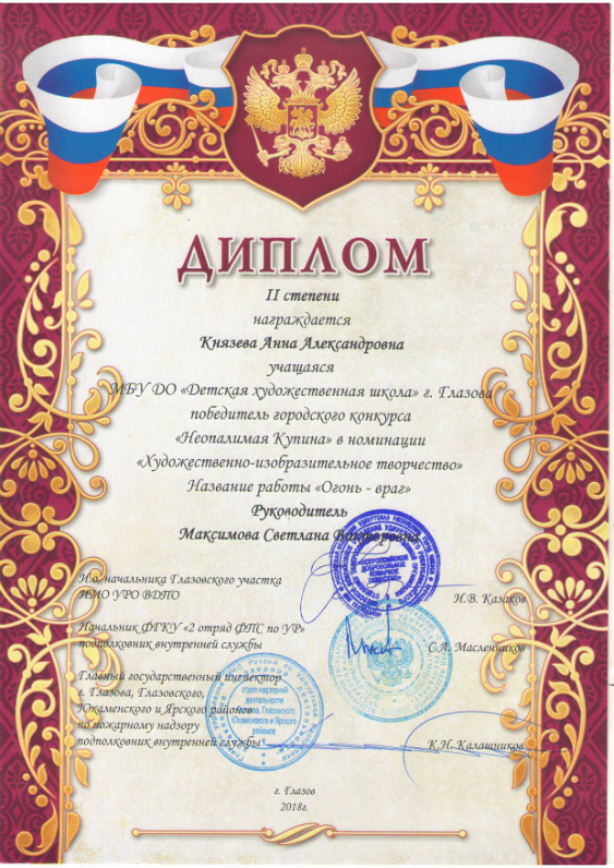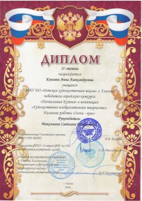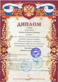 Грамота за I место - Иванова Александра - победитель городского конкурса детских творческих работа "Дорога в космос" в номинации "Рисунок".