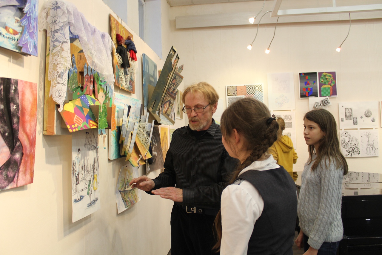 В таком формате прошло открытие выставки «Я б дизайнеры пошел...». Преподаватель художественного отделения Лицея искусств Ардашев Андрей Николаевич, организатор и вдохновитель данной выставки, рассказал учащимся о некоторых особенностях своего мастерства и профессии, ответил на их вопросы. Диалог получился доверительным, а сама выставка – интригующей.