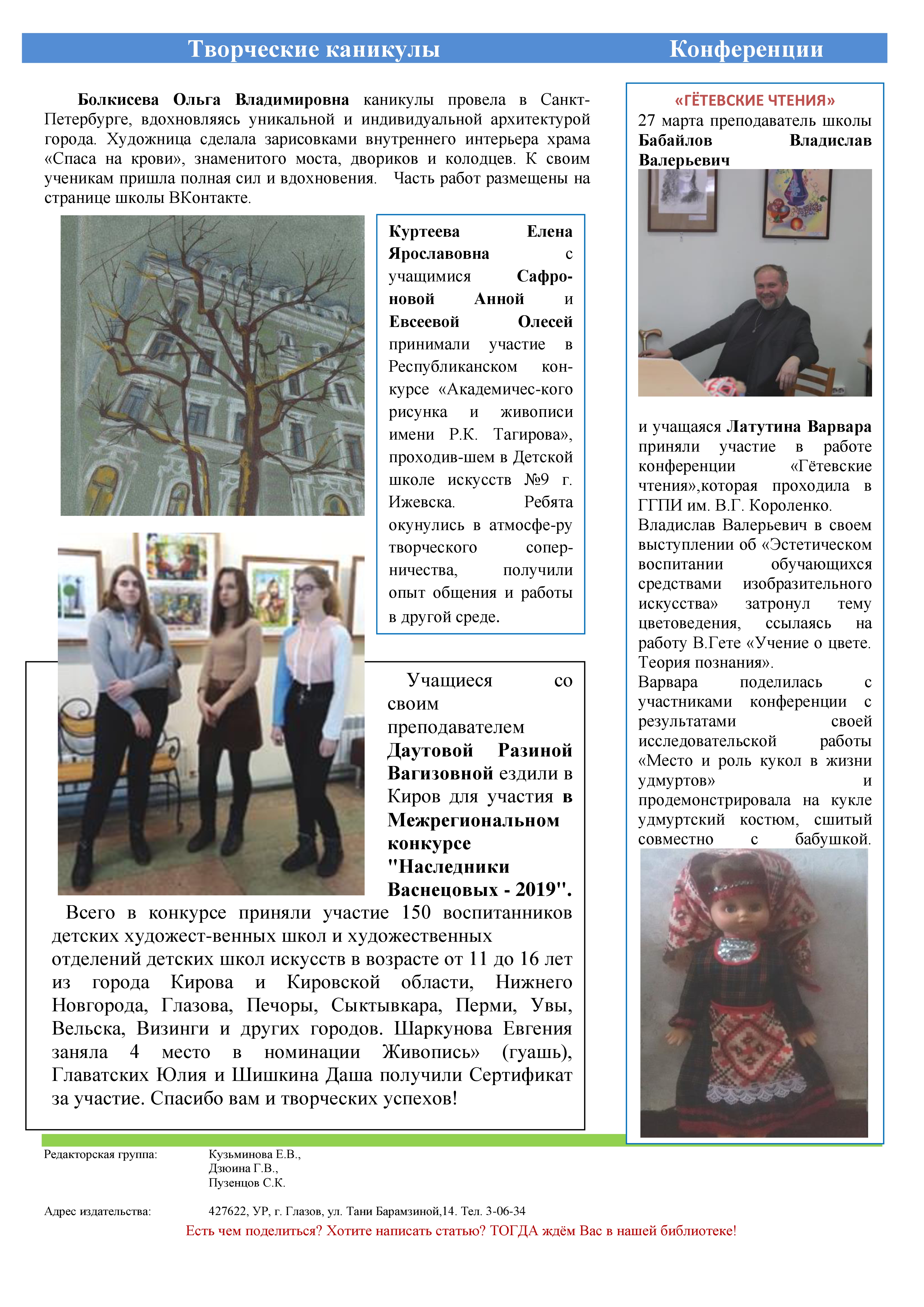 Кельм Т. Л. Роль этюда в работе над пейзажем // Материалы Всероссийской науч.-практ. конференции с международным участием «Десятые юбилейные Есиповские чтения: школьный учитель в полиэтническом регионе –гражданин, предметник, наставник» / науч. ред. А. А. Мирошниченко; отв. ред. В. В. Баженова. – Глазов : Глазов. гос. пед. ин-т, 2019. – С. 120-123
