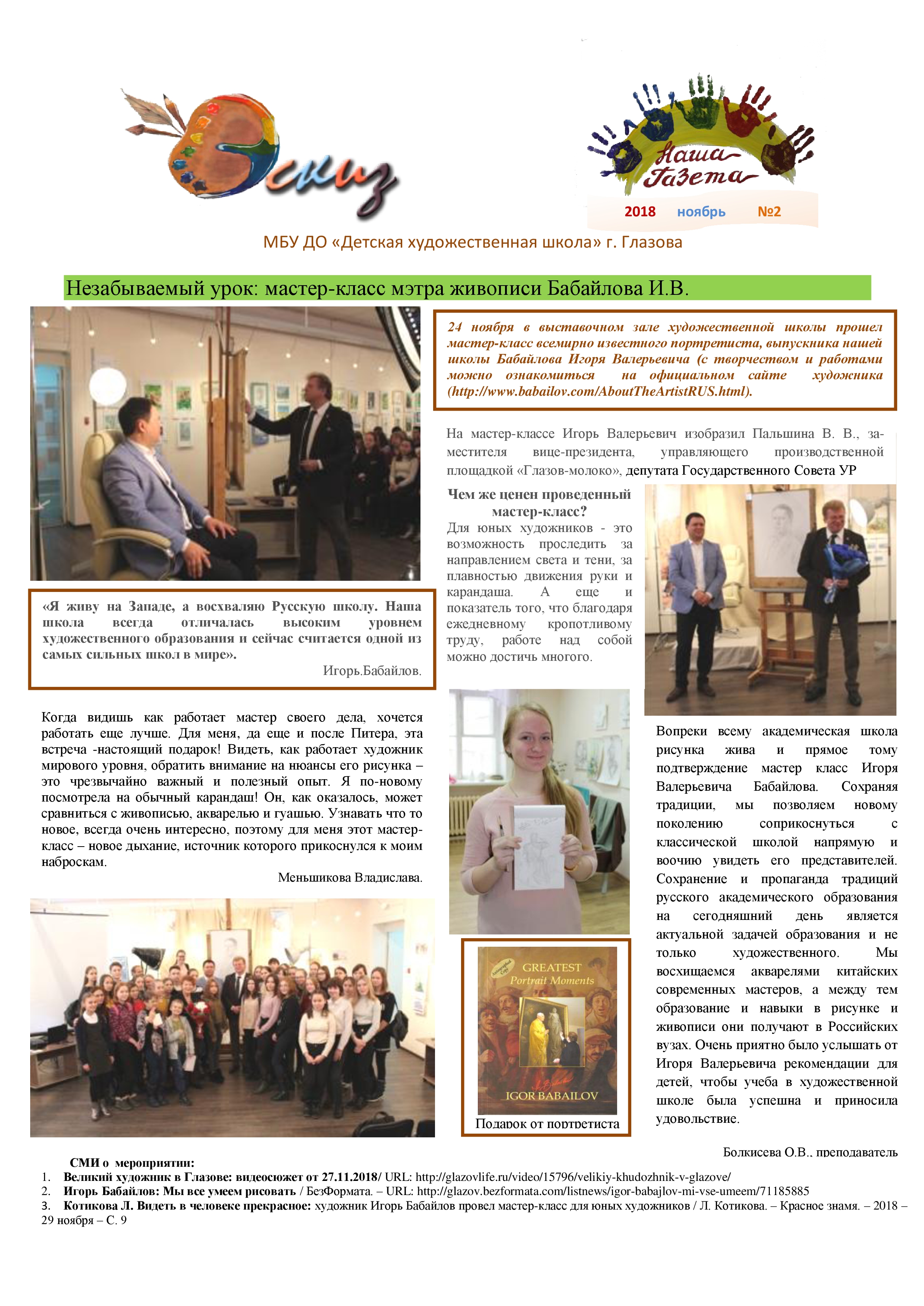 ВСЕХ! ВСЕХ! ВСЕХ! Приглашаем читать второй выпуск «НАШЕЙ ГАЗЕТЫ». Порадуйтесь вместе с нами за наших юных художников, а теперь еще и начинающих журналистов Московцеву Софью, Котикову Елизавету и Меньшикову Владиславу. Поддержите их и публикуйтесь сами! Декабрьский номер будет посвящен Новому году!